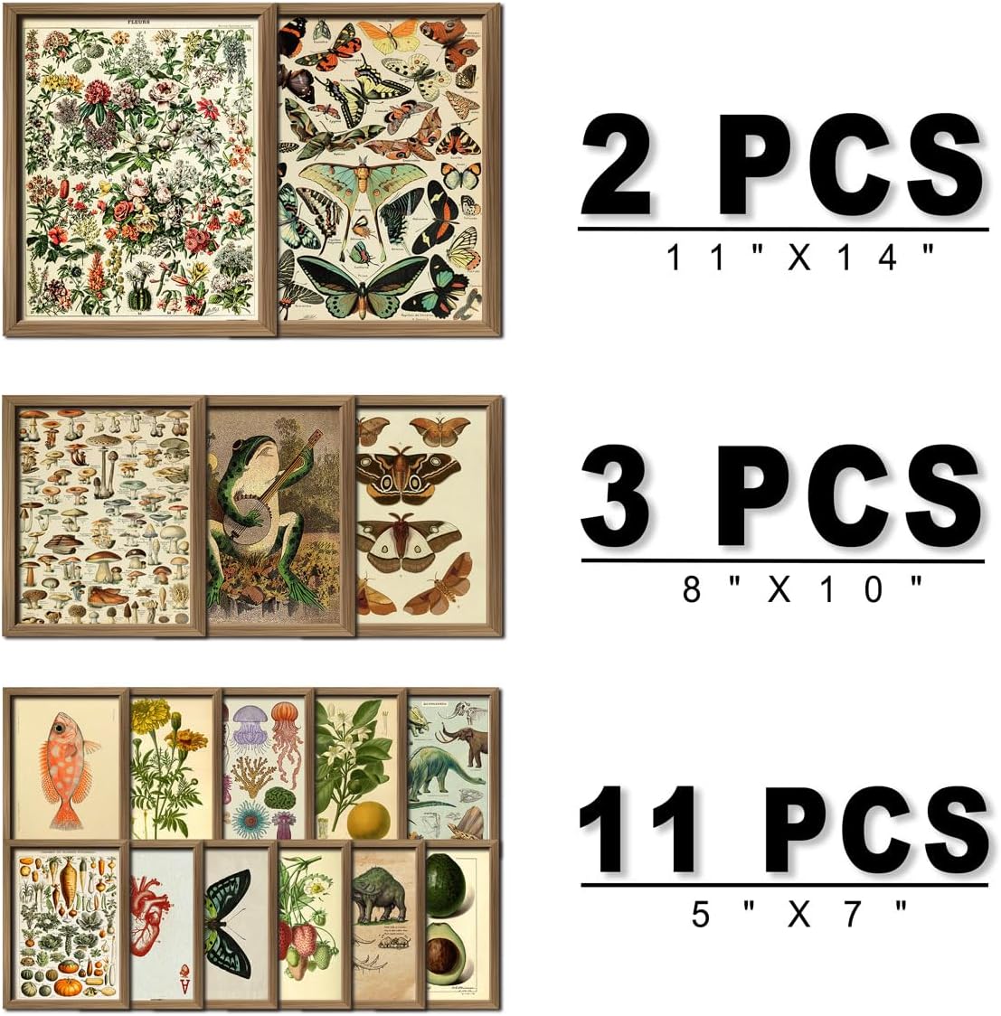 ANERZA 16 PCS Framed Vintage Wall Art Decor, Cottagecore Wall Prints for Bedroom, Gallery Wall Frame Set, Farmhouse Posters for Living Room Aesthetic, Wall Collage Kit Pictures, Rustic Dorm Home Decor