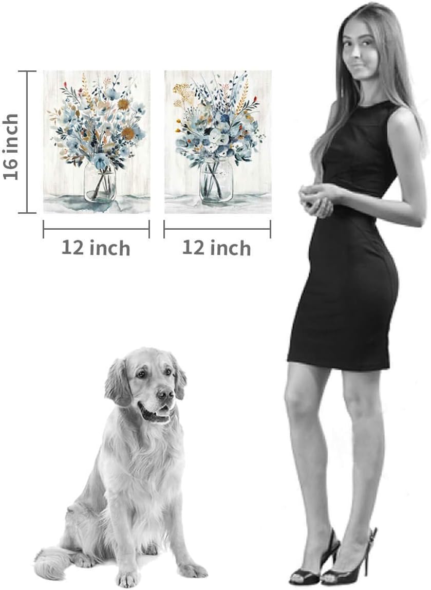 Bring a touch of elegance and sophistication to your dining room with these stunning Floral Canvas Wall Art Prints. This set features a beautiful abstract blossom flower bouquet in a glass bottle, adding a pop of color and charm to your space.